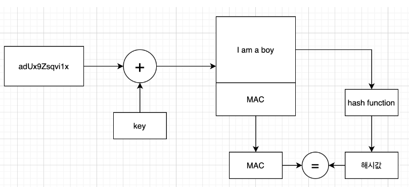 이렇게 대칭키로 데이터 송수신이 이루어 질때 혹, 데이터가 중간에 탈취당하여 변조가 일어났음을 확인하기 위한 MAC(Message Authentication Code)라고 불리는 메시지 인증코드를 함께 보내게 됩니다. MAC은 원본 데이터의 해시값인데요, 수신자는 복호화 한뒤 [데이터 + MAC]에서 데이터를 해시한 결과 값과 MAC을 대조하여 동일한지를 확인하면 변조유무를 알수 있습니다.