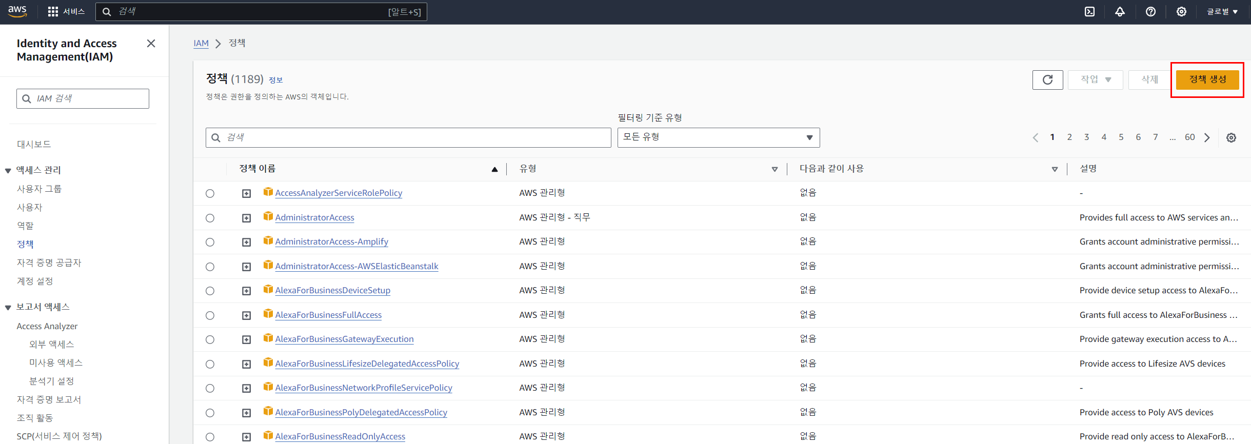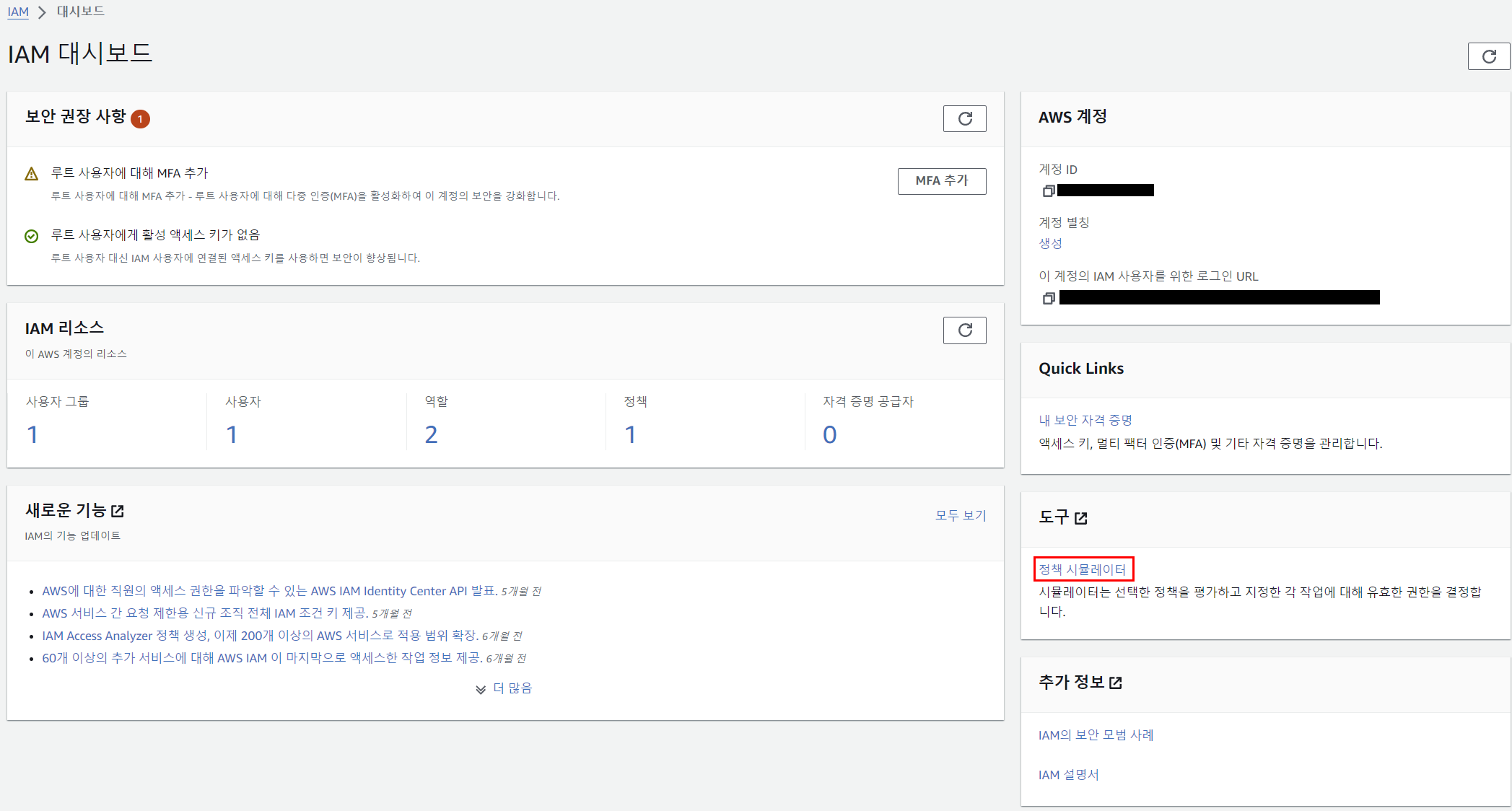 - 하위 계정을 만들고 정책을 연결하여 생성된 계정이 정말로 그 권한을 가지고 있는지에대 대한 시뮬레이션 기능을 제공 합니다.